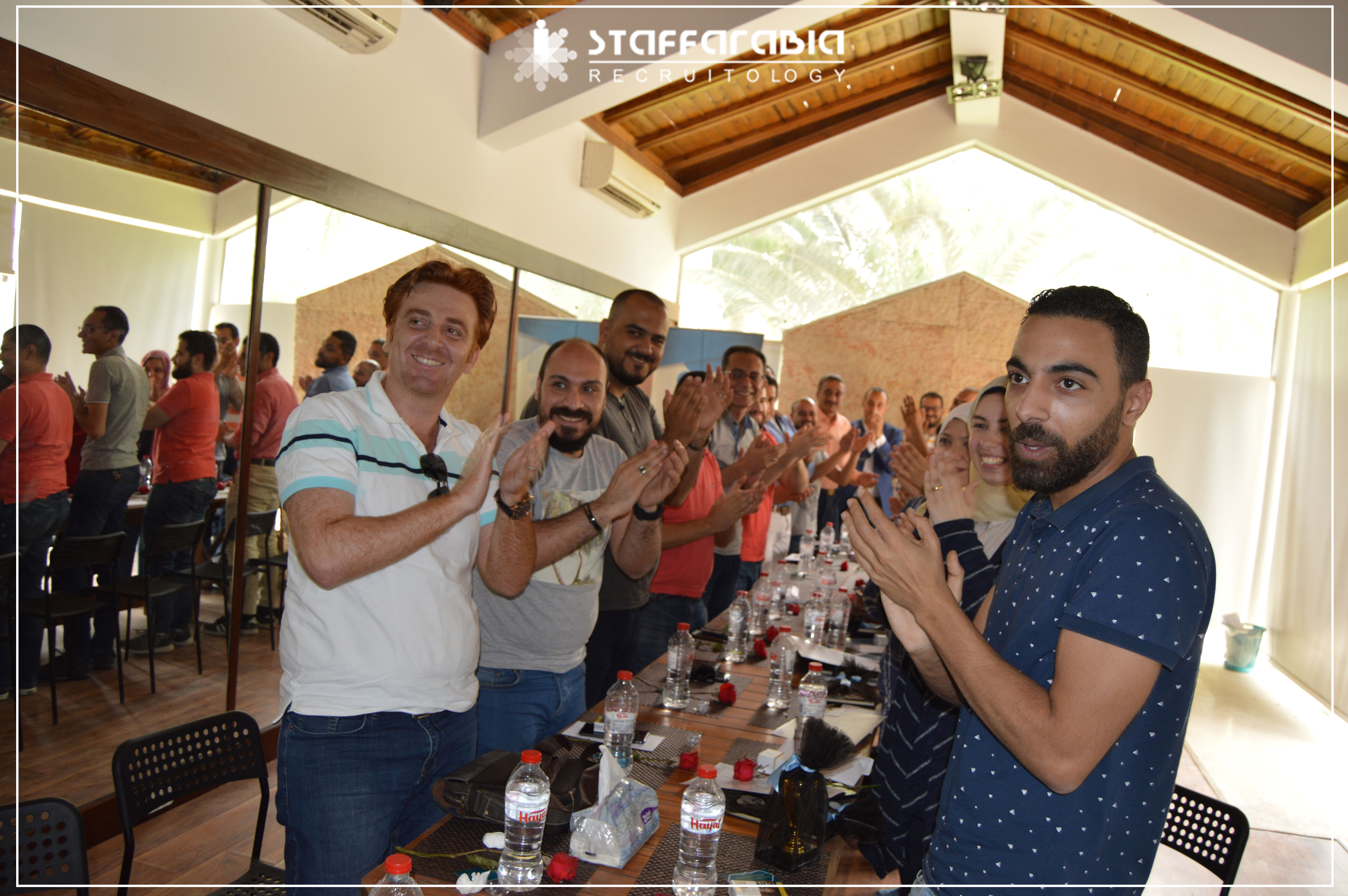 The event took place in an informal environment at one of Cairo’s most prestigious and beautiful clubs , the day began with a meeting with the presence of the Group Managing Partners Mr. Wael Salloum & Mr. Iyad Hafez and all team members & continued with a presentation by Mrs. Mayada Maged our Group Resourcing Manager where she presented the success stories & distinguished personnel and their achievements over the last year while Promotions & best Performers where announced and appreciated . Then the meeting then was ended with an inspiring speech by Mr. Iyad Hafez our Managing Partner where he illustrated the Strategy and targets of Staff Arabia , expansion & achievements through the year and thanked everyone for their contribution in Staff Arabia’s Success and said “it’s my pleasure to be surrounded with brilliant, Passionate people who are experts at their craft. With global changes in our industry & business environment, we managed to realize it well in advance and adapted with these changes successfully and learned a lot together & gave an example of excellent team work”